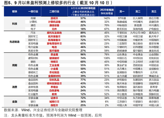 9月以来盈利预期上修较多的行业主要集中在:AI(游戏、计算机设备、通信设备、元件)、先进制造(摩托车、航空航海装备、家电零部件、电池、医疗服务)、周期(有色、玻璃玻纤、钢铁、农化制品等)、消费(饮料乳品、农业、饰品等)、金融(券商保险、城商行)。