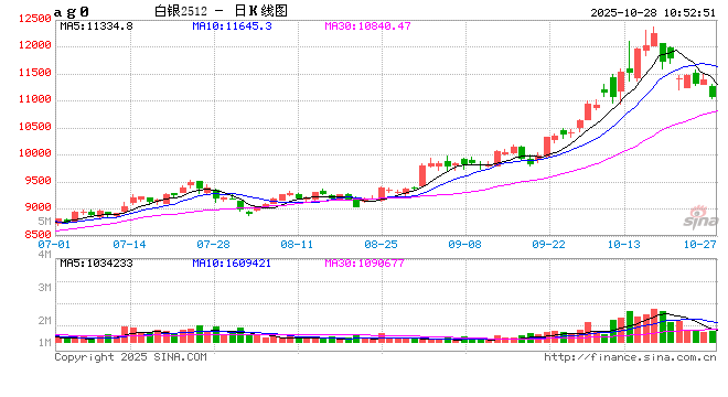 正文 快讯|沪银主力合约跌超3%,现报11085元/千克 泰和科技 V管理员 /10-28/4阅读/0评论 1028 文章最后更新时间2025年10月28日,若文章内容或图片失效,请留言反馈! 10月28日上午,沪银主力合约跌超3%,现报11085元/千克。